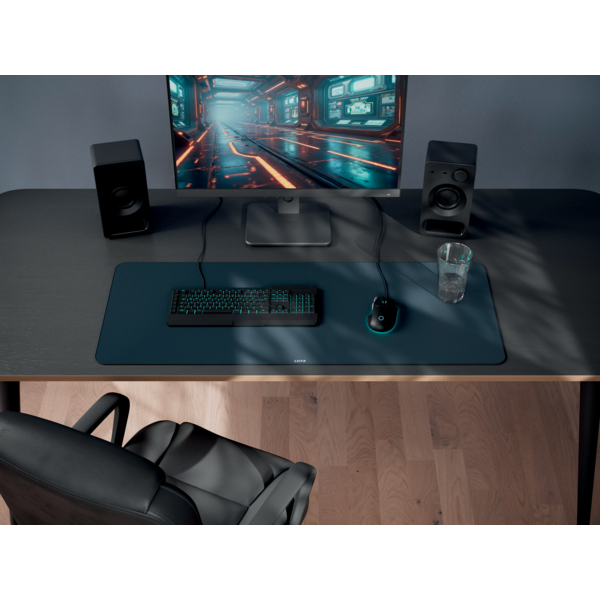 Más informaciónCrea tu espacio para sentirte bien con la alfombrilla de ratón Alfombrilla de ratón extragrande para juegos Leitz. Se trata de una elegante alfombrilla protectora de escritorio con una cómoda superficie blanda para largas sesiones de trabajo y juego. Su superficie extragrande de 100 x 40 cm ofrece espacio para teclado y ratón, bloc de notas y accesorios. La superficie mate puede utilizarse como alfombrilla de ratón de escritorio y permite controlar el ratón con gran velocidad y precisión. Compatible con todos los ratones de seguimiento láser y ópticos. Protege de arañazos, manchas, derrames y rozaduras. Lavable a máquina a 30 grados. Enrollable para facilitar su transporte, viene en una pequeña caja de cartón marrón fácil de envolver, ideal para regalar. Envases sin plástico. FEEL GOOD con Leitz.