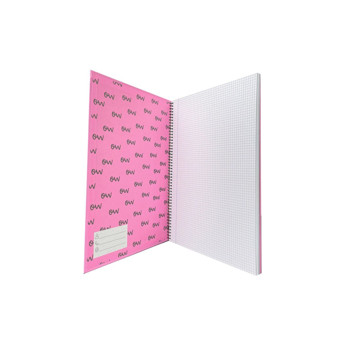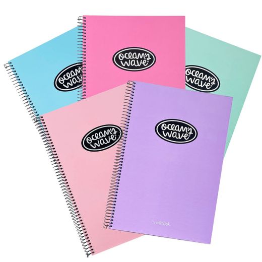 Cuaderno de la marca Ocean's Wave en tamaño folio. Tapa extra dura forrada tanto exterior como interior. 80 hojas de papel de 90 gramos con cuadrícula 4x4 y margen. Se pueden comprar unitariamente y van en paquetes de 5 unidades surtidos de estos colores Pastel: Rosa chicle, verde, lila, rosa y azul