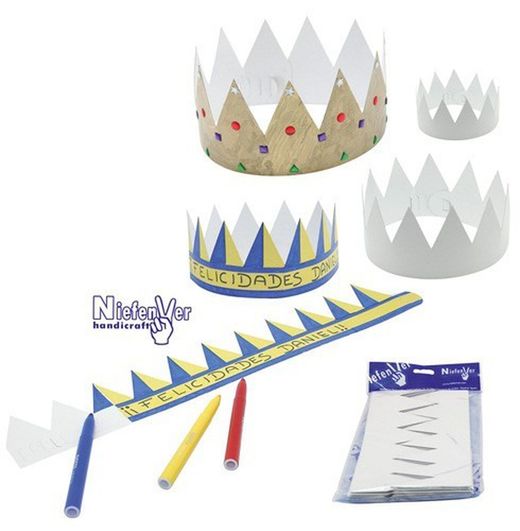 Coronas en cartón para que las puedas pintar y decorar por ambas caras. Tienen un tamaño aproximado de 53x8,5cm. Indicado para uso escolar y manualidades.