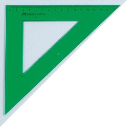 Cartabón escolar de la prestigiosa marca faber castell en color verde a prueba de emborramiento. Fabricadas en plástico y graduadas. Distintas longitudes para que puedas elegir. Especialmente indicadas para uso escolar.