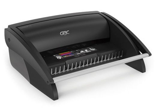 Encuadernadora manual de canutillo de plástico modelo combbind 110 con asa de perforación grande, tan ancha como la máquina para poder usar las 2 manos a la hora de perforar. Capacidad de perforación: 12 hojas. Encuaderna hasta 195 hojas din a4, din a5 y din a3 de 80 gramos. Dimensiones: 303 x 443 x 173.