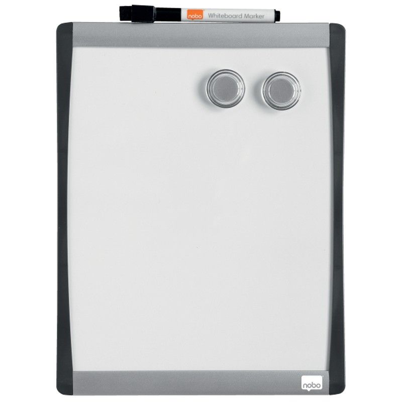 Esta mini pizarra es la solución perfecta para anotar ideas, recordatorios o listas. Con su elegante marco arqueado plateado y negro, este tablero de notas se adapta perfectamente a cualquier oficina o entorno doméstico. Se puede montar en la pared con almohadillas adhesivas e imanes para superficies metálicas como frigoríficos, la pizarra magnética se puede montar en orientación vertical u horizontal. Se suministra con un rotulador para pizarra con borrador integrado y 2 imanes para pizarra. Tamaño: 215x280 mm