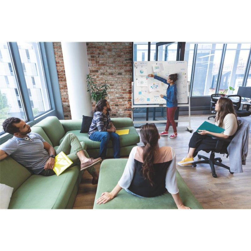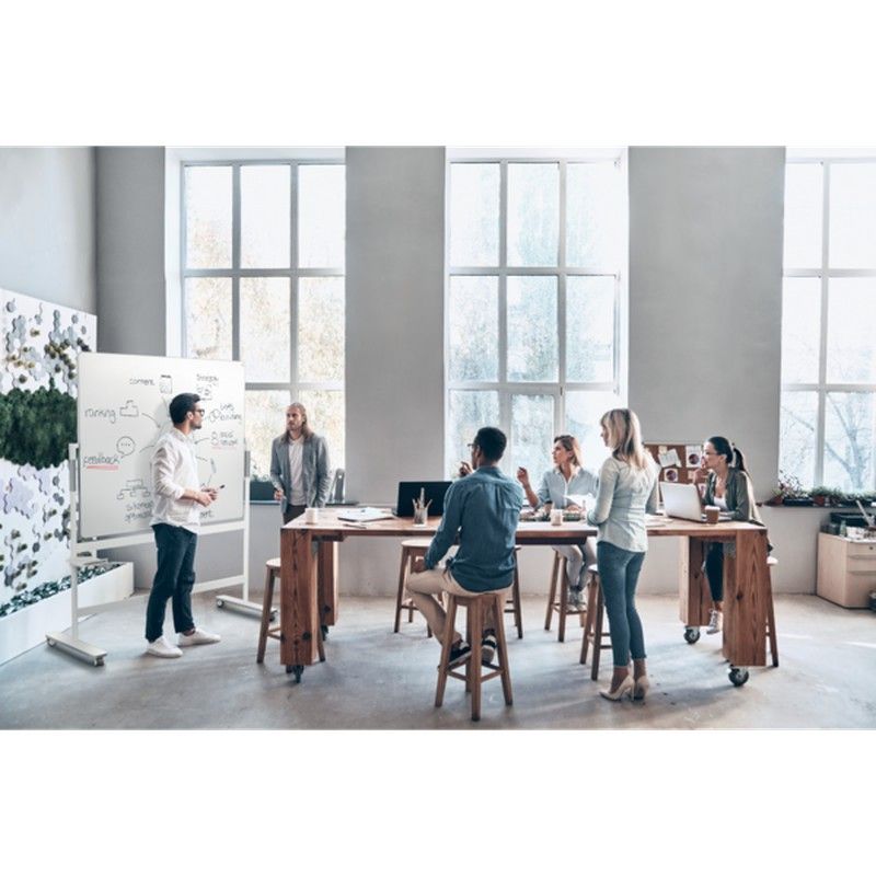 La pizarra móvil giratoria Move & Meet es la herramienta de colaboración móvil ideal, fácil de trasladar de un lugar a otro. Incluye una pizarra magnética de doble cara con un moderno diseño de esquinas curvadas. La pizarra magnética de acero tiene un giro completo de 360 grados para facilitar el uso de ambos lados de la pizarra de borrado en seco y ampliar las áreas de escritura, con una innovadora función de bloqueo central. Con ruedas bloqueables y base de plataforma estable, la pizarra sobre ruedas es ligera y fácil de mover. La herramienta perfecta para cualquier espacio de oficina colaborativo, ya que ayuda a los equipos a crear y compartir ideas. Incluye una bandeja extraíble integrada para accesorios de pizarra. Tamaño de la pizarra 1500x1200mm. Esta pizarra móvil giratoria de doble cara es la herramienta perfecta para cualquier espacio de oficina colaborativo. Pizarra blanca magnética de 1500x1200 mm.