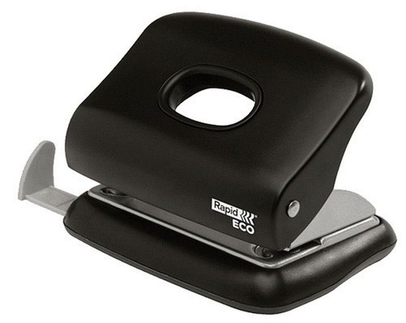 Este taladro como toda la línea eco de rapid se fabrica con criterios de sostenibilidad. Está fabricado en un 80 % con plástico reciclado y el envase es de cartón reciclado y las tintas que lo marcan son de base de soja libres de petroleo. Capacidad de perforación: 20 hojas. Garantía de 5 años. Incorpora regleta para centrar el papel.