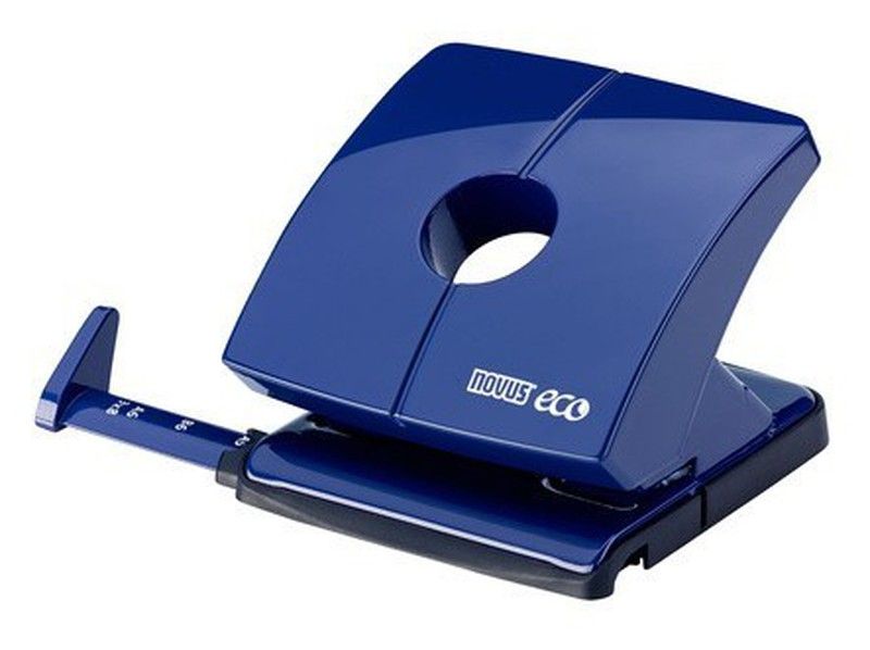 Taladro ecológico b225 de novus metálico y revestido con material sintético ecológico de madera biodegradable 100%. Taladra hasta 25 hojas y puede plegarse mediante un mecanismo de bloqueo que permite guardarse en cualquier cajón al final de la jornada de trabajo. Dispone de recipiente para residuos pudiéndose abrir a la mitad para vaciarlo fácilmente y volverlo a cerrar sin esfuerzo. Peso aprox: 350 g. Incorpora regleta con tamaños din para nuestra elección. Diámetro del agujero de 5,5mm y con una separación de 80mm. Color azul marino brillante.